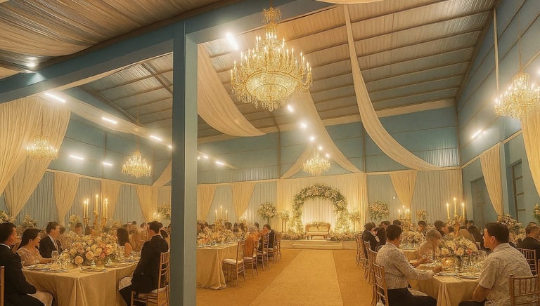 Kami menyediakan persewaan gedung untuk acara resepsi, pernikahan, khitan, pesta, dan rapat.